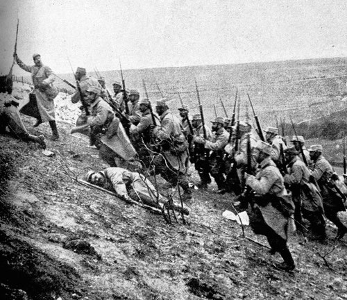 Le bataillon est arrêté net par un feu intense de mitrailleuses et d'artillerie. Le feu est si bien ajusté que tous ceux qui sortent des tranchées de départ sont tués ou blessés dès les premiers pas. Les officiers sont tués ou blessés grièvement, les pertes en hommes sont grandes.